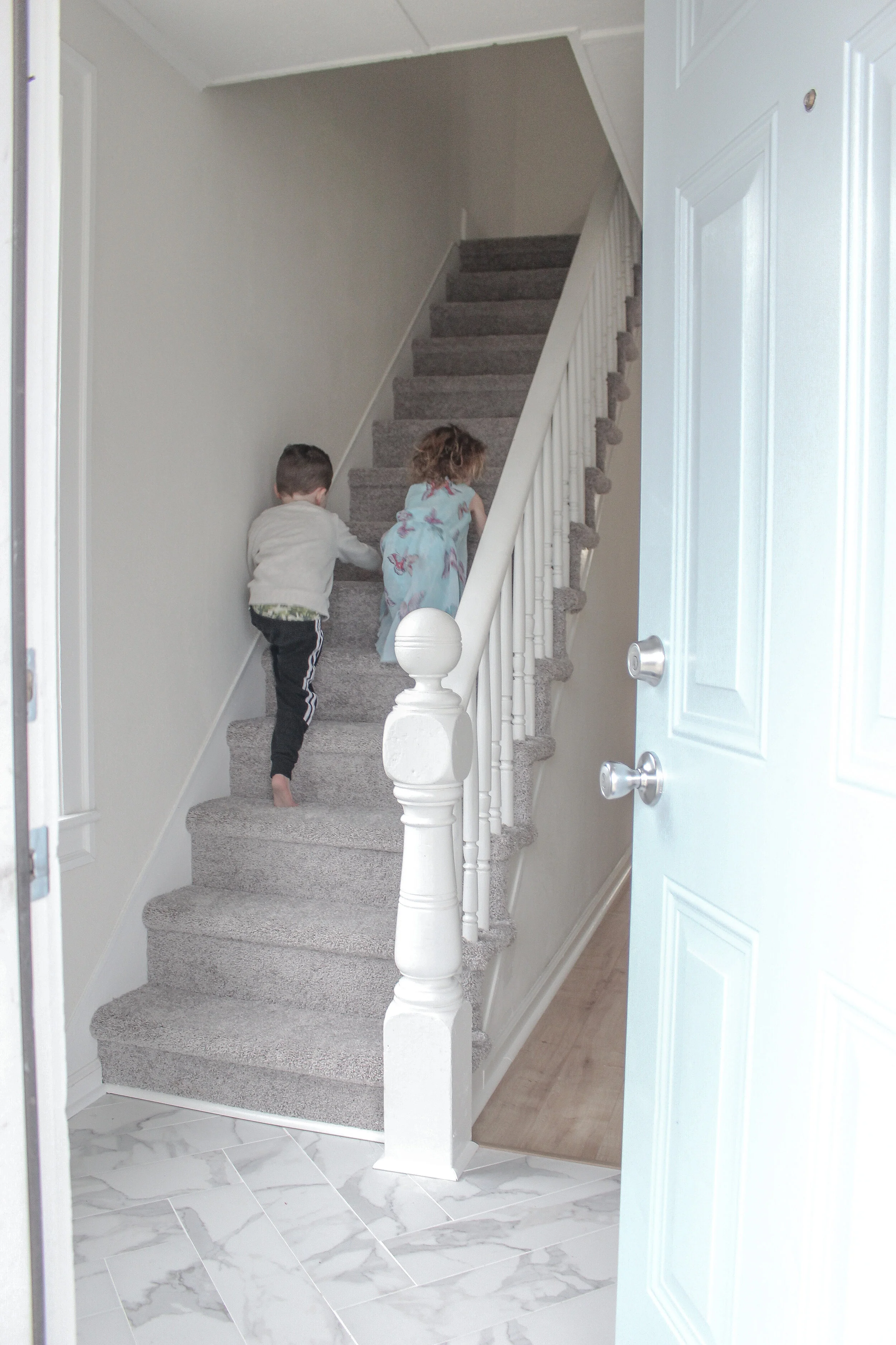 We usually let the kids come and experience our own person reveal with us at our flip houses. It’s become a tradition where they take their shoes off, run into each and every room inspecting, exploring, critiquing, and making up new games each time. After about fifteen minutes of Sean and I inspecting the projects, dad takes the kids to McDonald’s and mom stays to shoot pictures for listing and blogging.