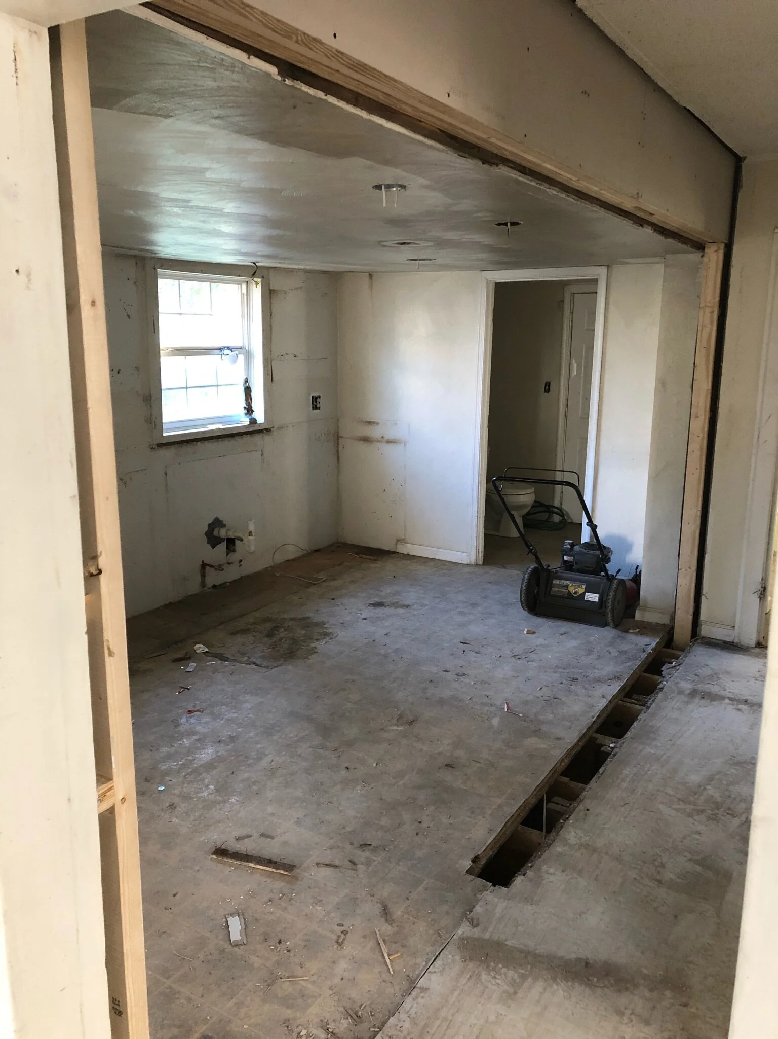 More recognition to Sean and the team: a wall was knocked down right where I am standing to take the picture above and a new wall was added approximately four feet behind me to leave enough space for a forth bedroom behind the wall. Bumping the wall back not only kept the bedroom but made room for an eat in kitchen!