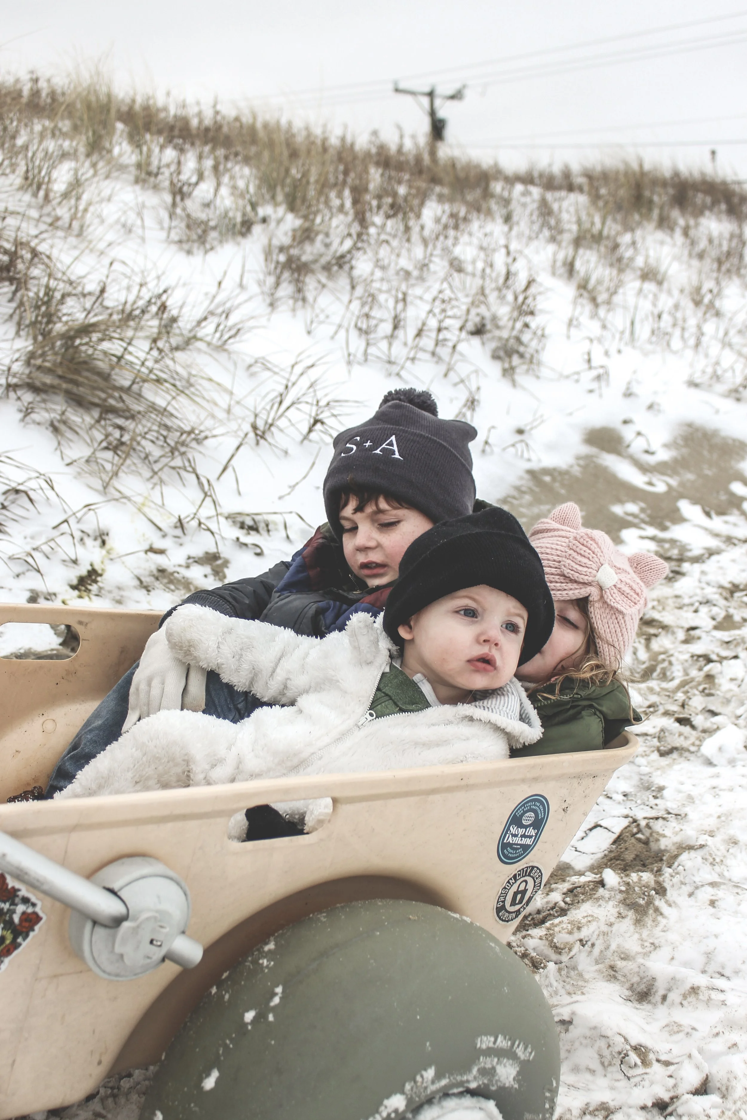 Of course we had to brave the conditions and go to the beach in the snow. The wind made it feel 20 degrees colder than it actually was but the kids did great overall…at least good enough for mommy to snap the picture.