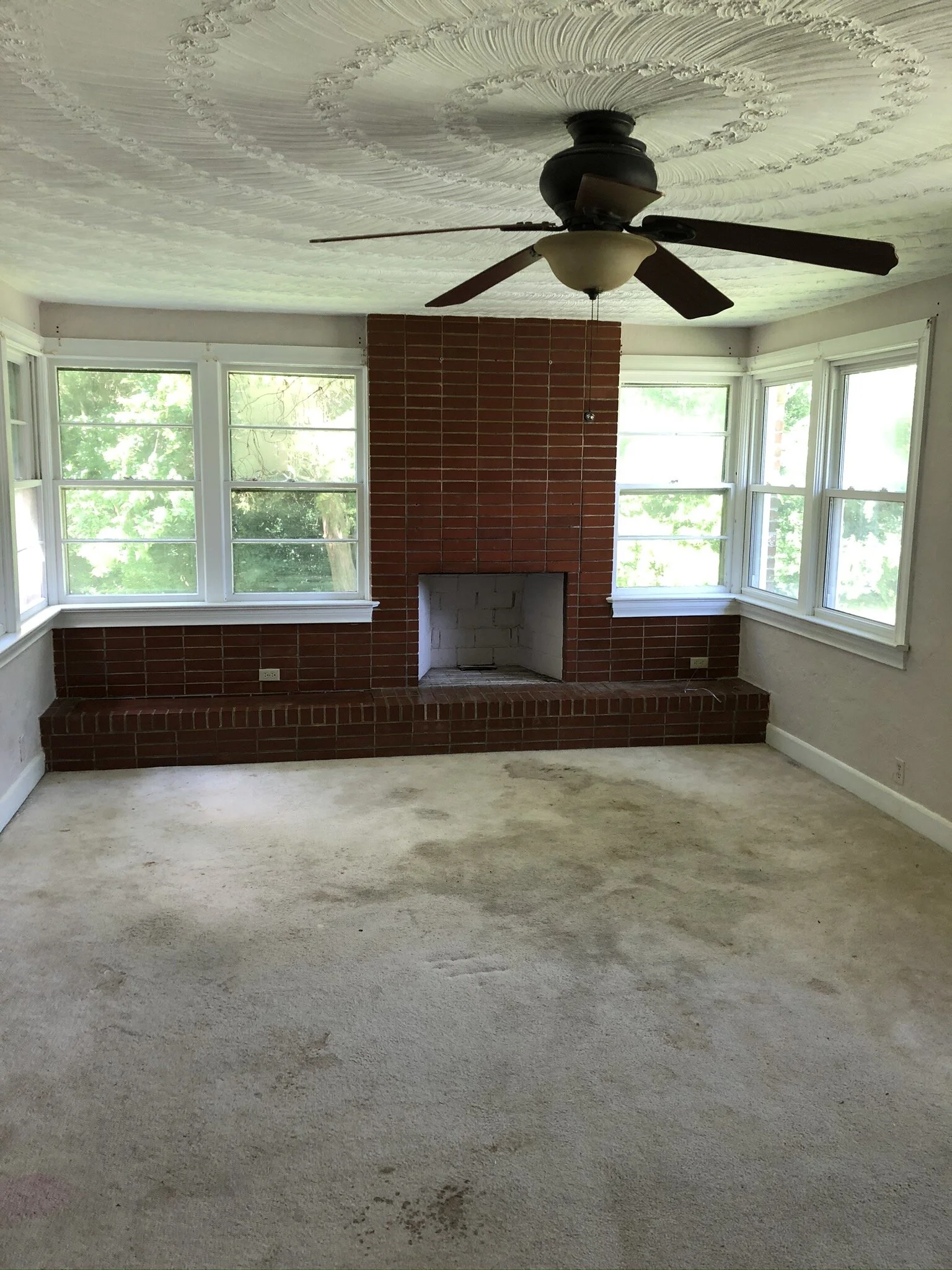 We carpeted the entire upstairs and unfortunately, due to some floor stairs in the downstairs living room, decided to carpet overtop the original hardwoods near the fireplace. Sean and his team tried so hard to recreate the beautiful flawlessness of the original hardwoods in the downstairs but just couldn’t swing it with some of the depth of the wear and tear on the floor. Carpeting was definitely the safest choice even though the house was shown to most viewers with the stained hardwoods. Once the carpets went it, it didn’t take long to receive the offer we were waiting for.